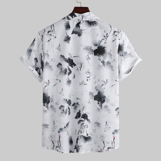 Cross-Border New Men's Casual Shirts Graffiti Fashion Printed Short-Sleeved Shirts Men's Lapel Shirts