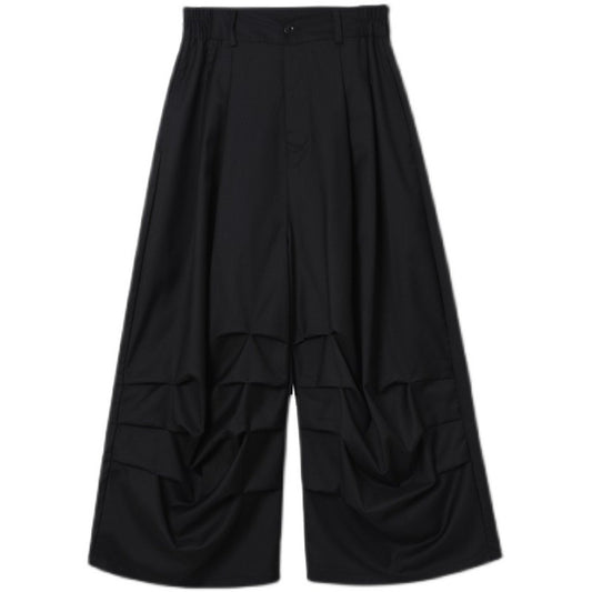 High Street Trendy Dark Yamamoto Pleated Cropped Stage Wear Casual Niche Pants
