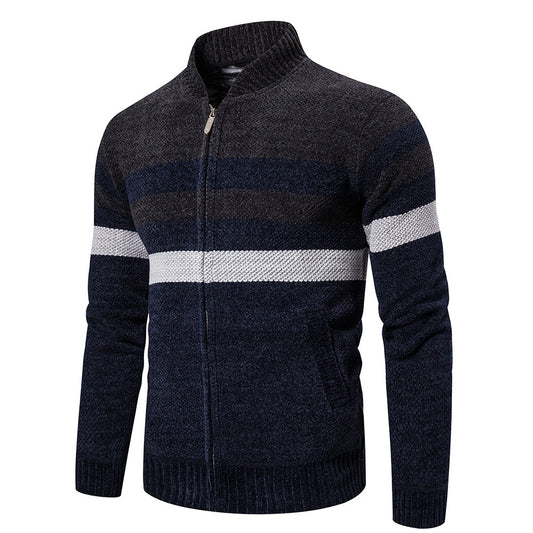 Cardigan Pull Couleur Unie Fermeture Éclair Vêtements D'extérieur Pull Manteau Homme