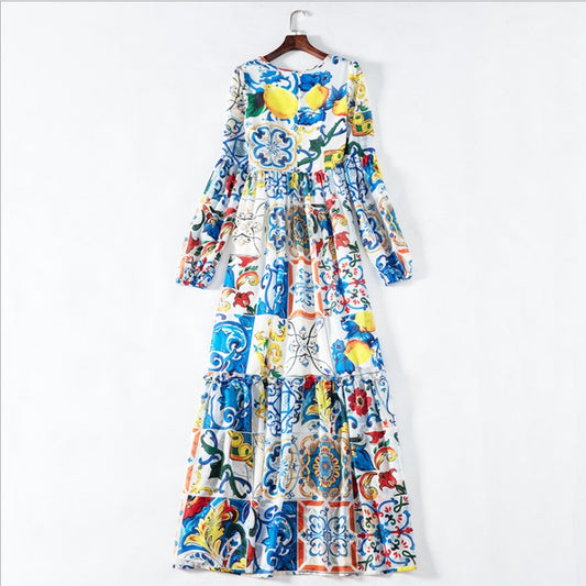 Printed Polka Dot Beautiful Lady Chiffon Floral Dress