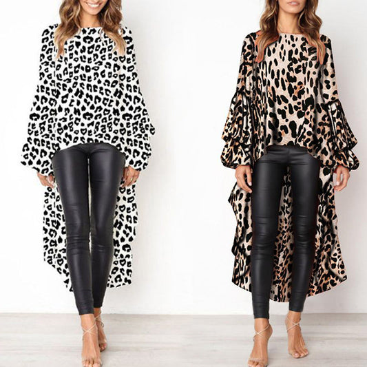 Chemise à manches longues à imprimé léopard pour femme