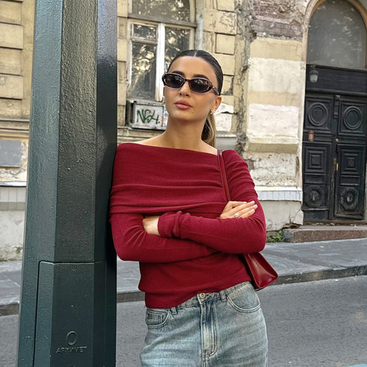 Hauts à la mode à manches longues pour l'automne, décolleté ouvert, décoration